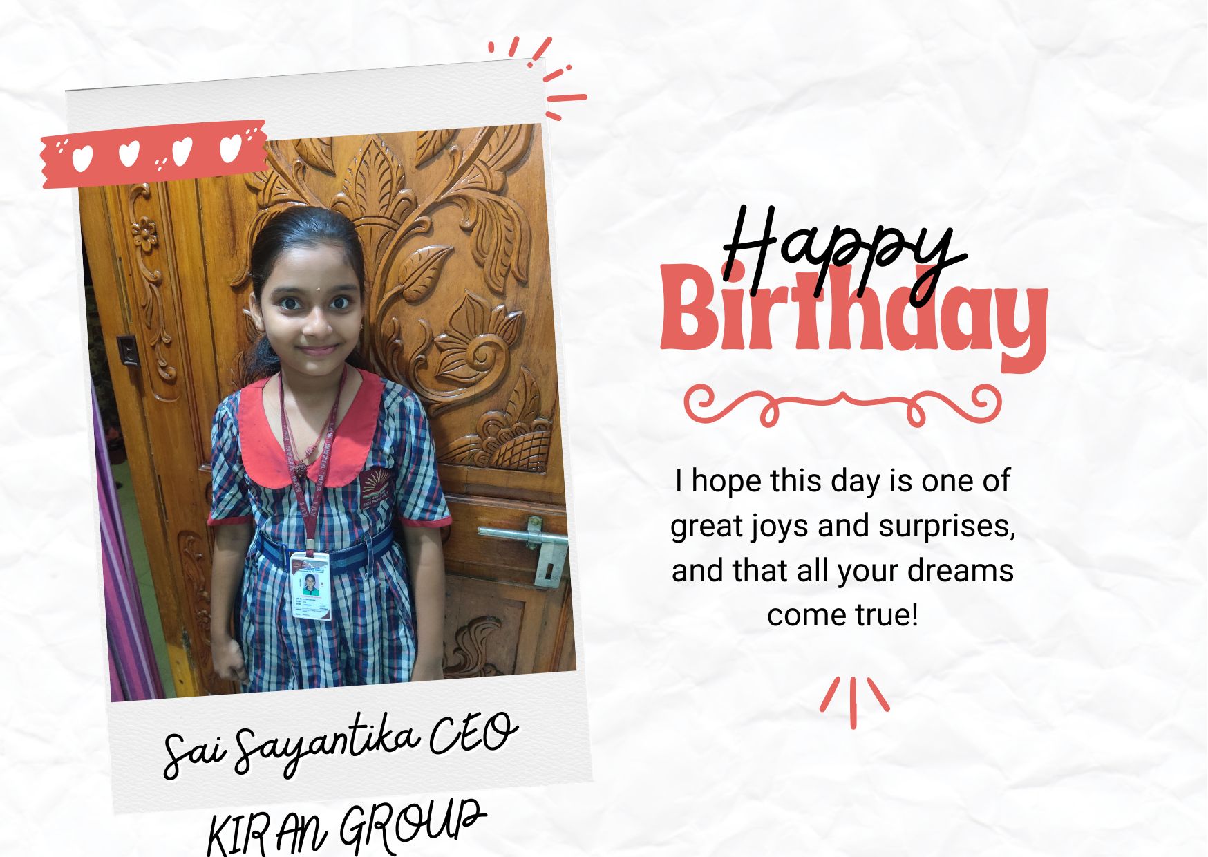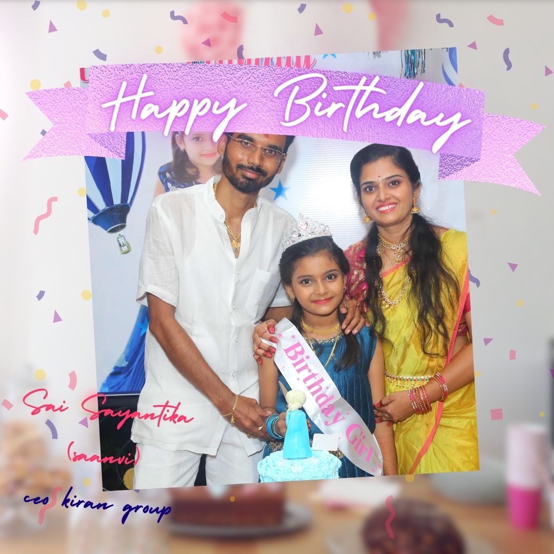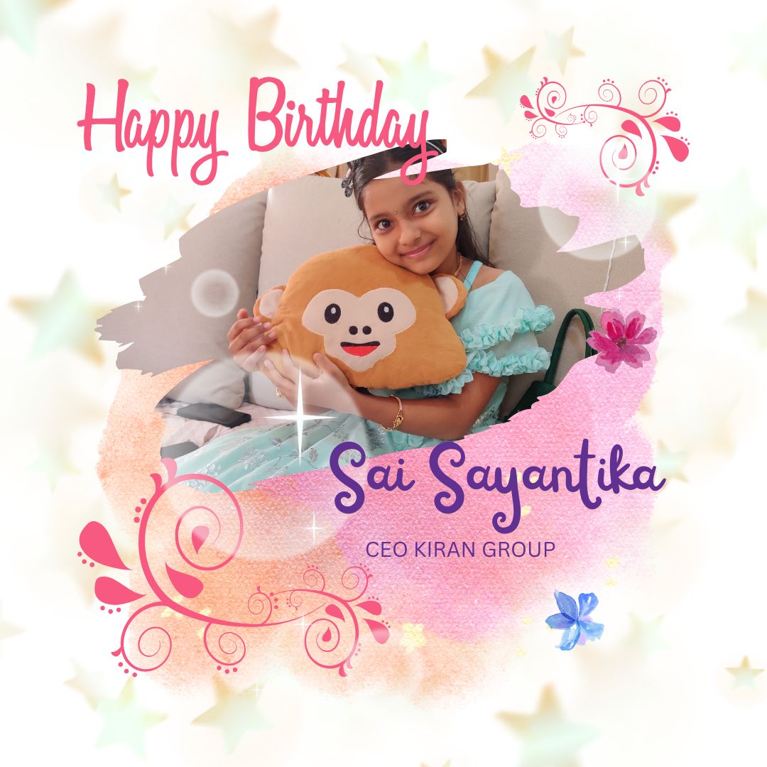 కిరణ్ టీవీ, విశాఖపట్నం :- కిరణ్ గ్రూప్ C.E.O …. గౌ కుమారి కంచరణ సాయి సయంతిక గారు కి మా హృదయపూర్వక పుట్టినరోజు శుభాకాంక్షలు .. మీరు మరిన్ని జన్మదిన వేడుకలు ఆనందంగా జరుపుకోవాలని మనస్ఫూర్తిగా కోరుకుంటూ … మీ కిరణ్ టీవీ మనేజ్మెంట్ & స్టాఫ్ .