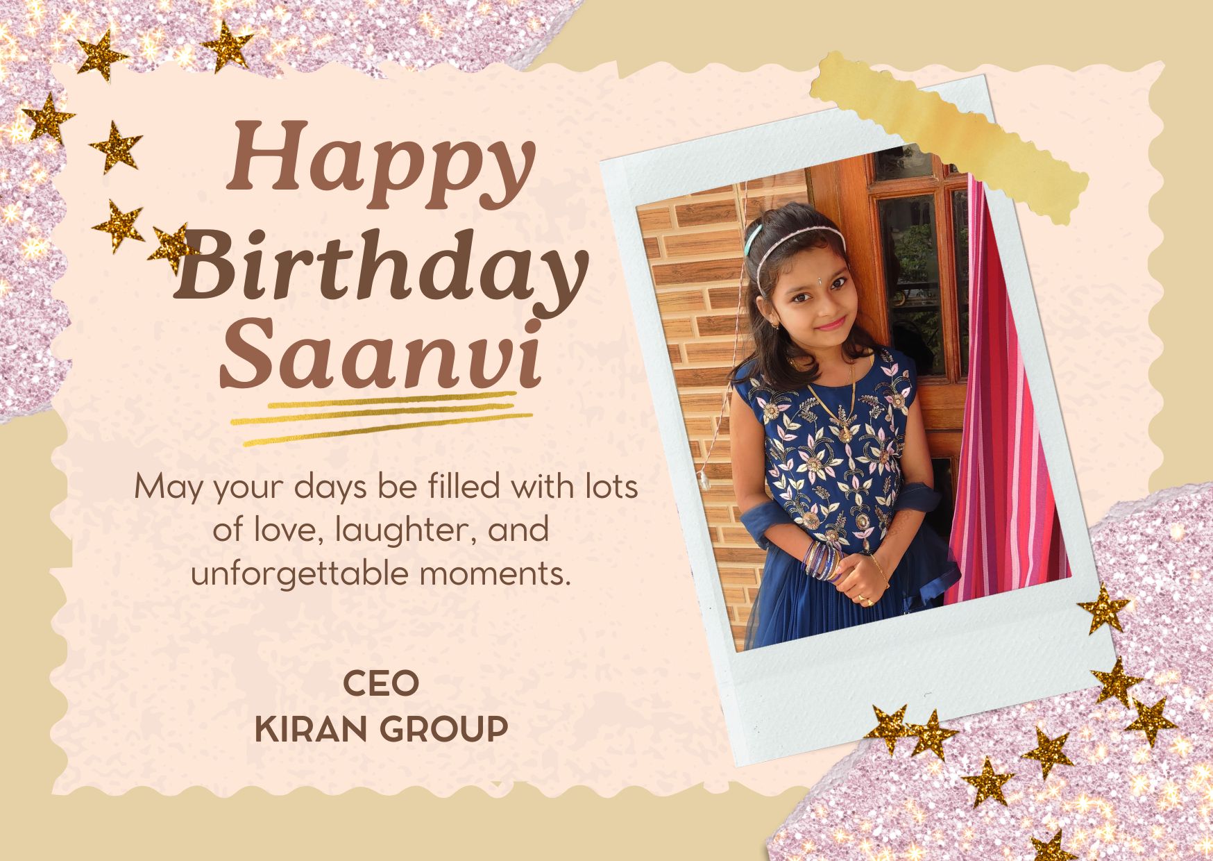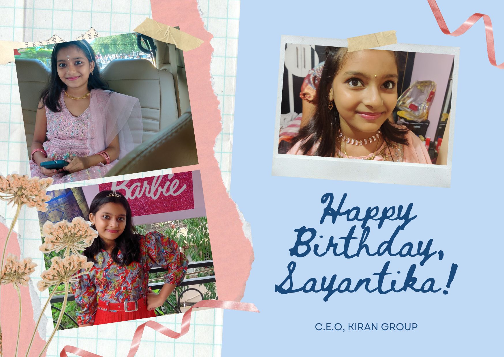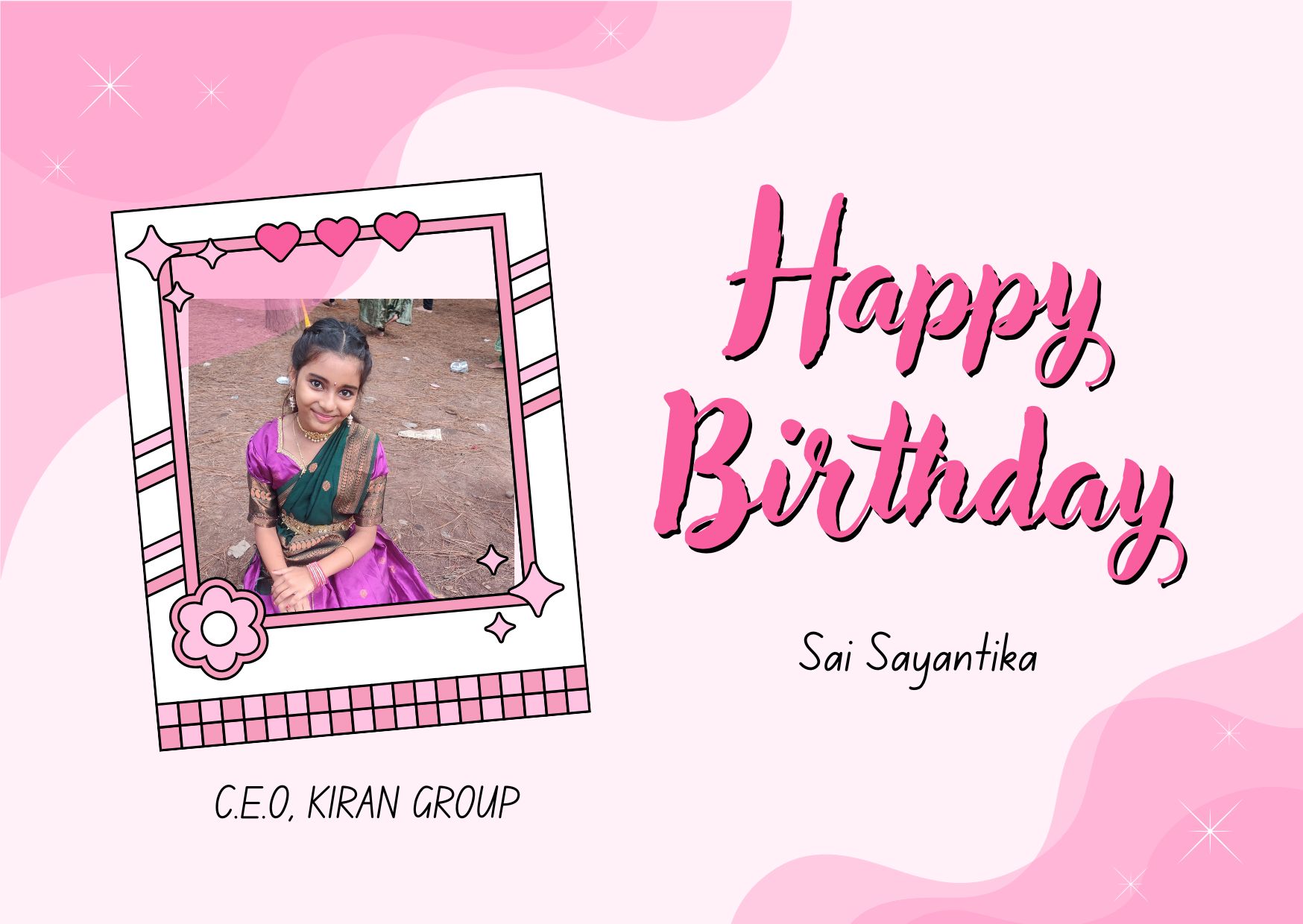 కిరణ్ టీవీ, విశాఖపట్నం :- కిరణ్ గ్రూప్ C.E.O …. గౌ కుమారి కంచరణ సాయి సయంతిక గారు కి మా హృదయపూర్వక పుట్టినరోజు శుభాకాంక్షలు .. మీరు మరిన్ని జన్మదిన వేడుకలు ఆనందంగా జరుపుకోవాలని మనస్ఫూర్తిగా కోరుకుంటూ … మీ కిరణ్ టీవీ మనేజ్మెంట్ & స్టాఫ్ .